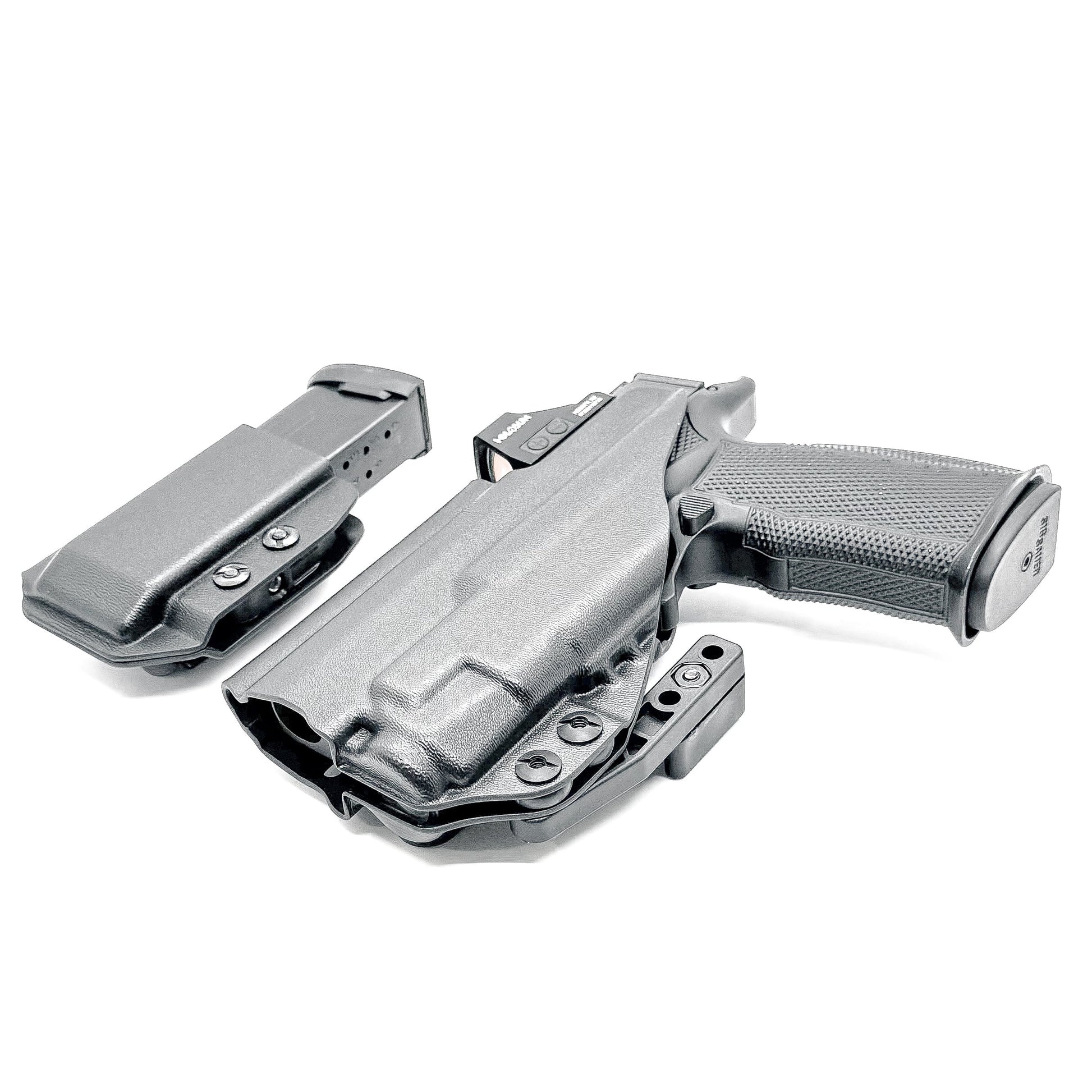 - Optional Modwing includes 2 inserts to allow the user to adjust the amount of leverage placed against the inside of the belt to reduce firearm printing. The location of the Modwing provides room for your fingers when drawing the pistol.